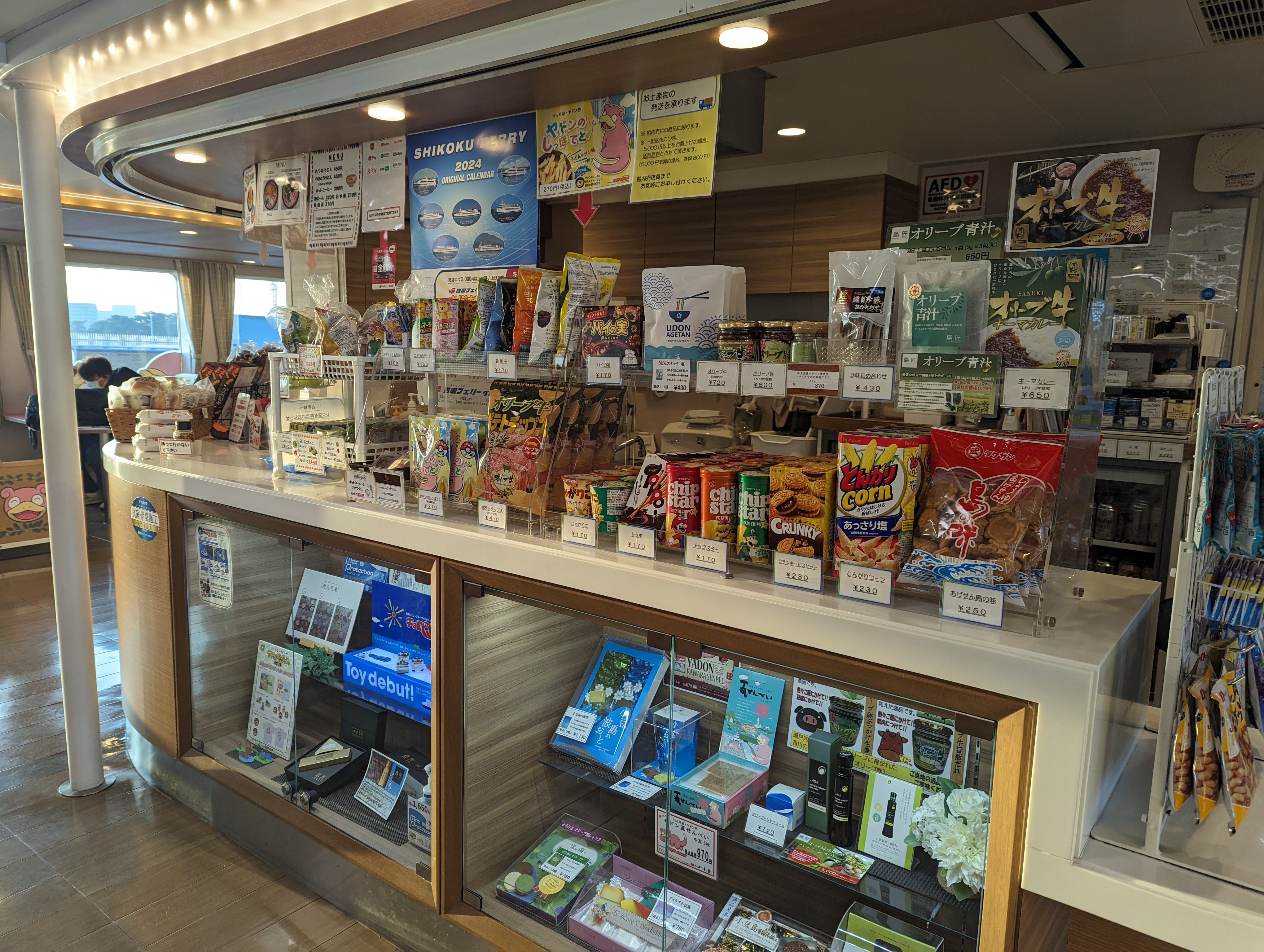 페리 내부에는 매점이 있다. 우동이 450엔이었다.