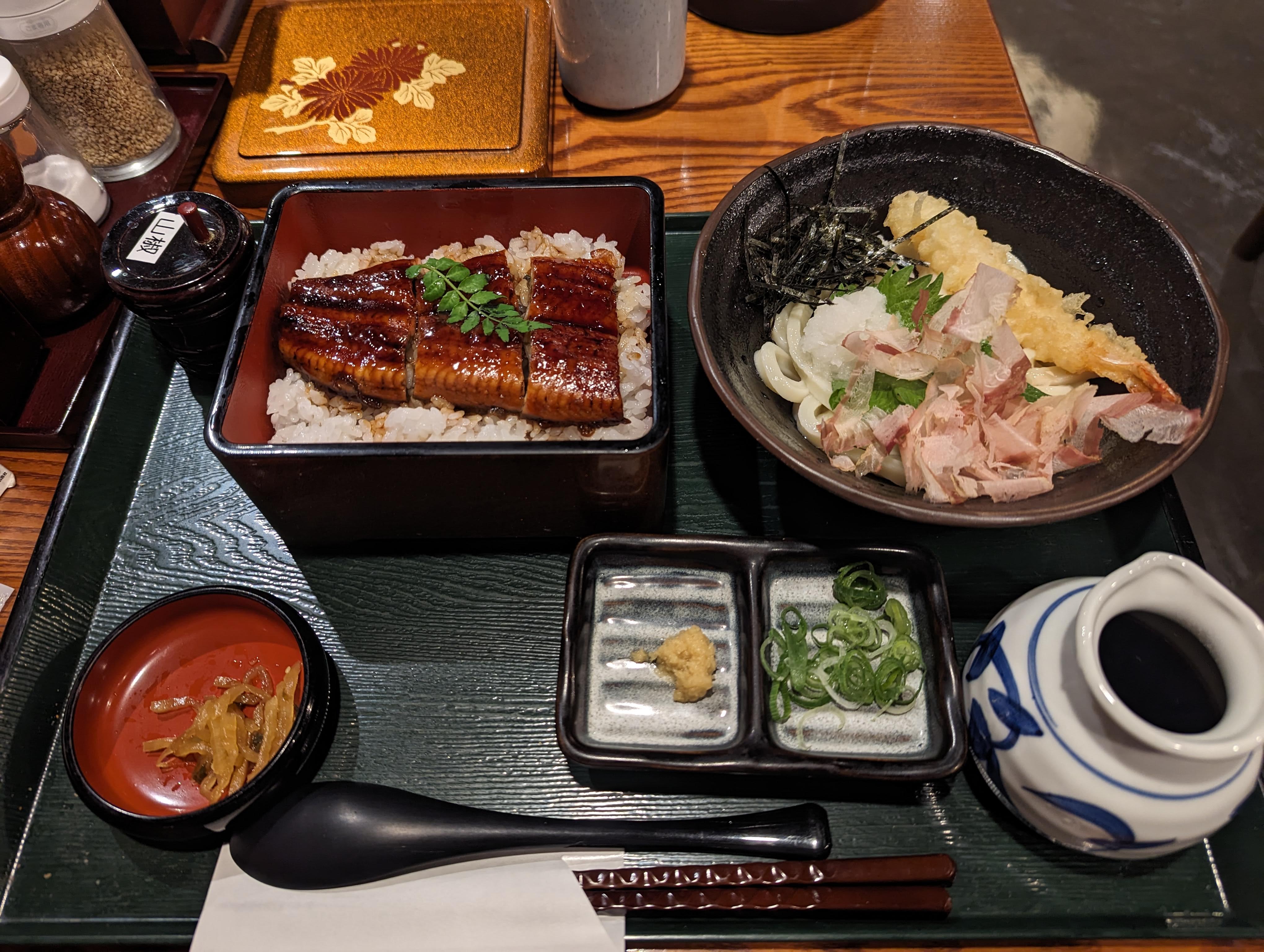 저녁으로 다카마쓰 역 2층에 있는 식당에서 장어덮밥을 먹었다.