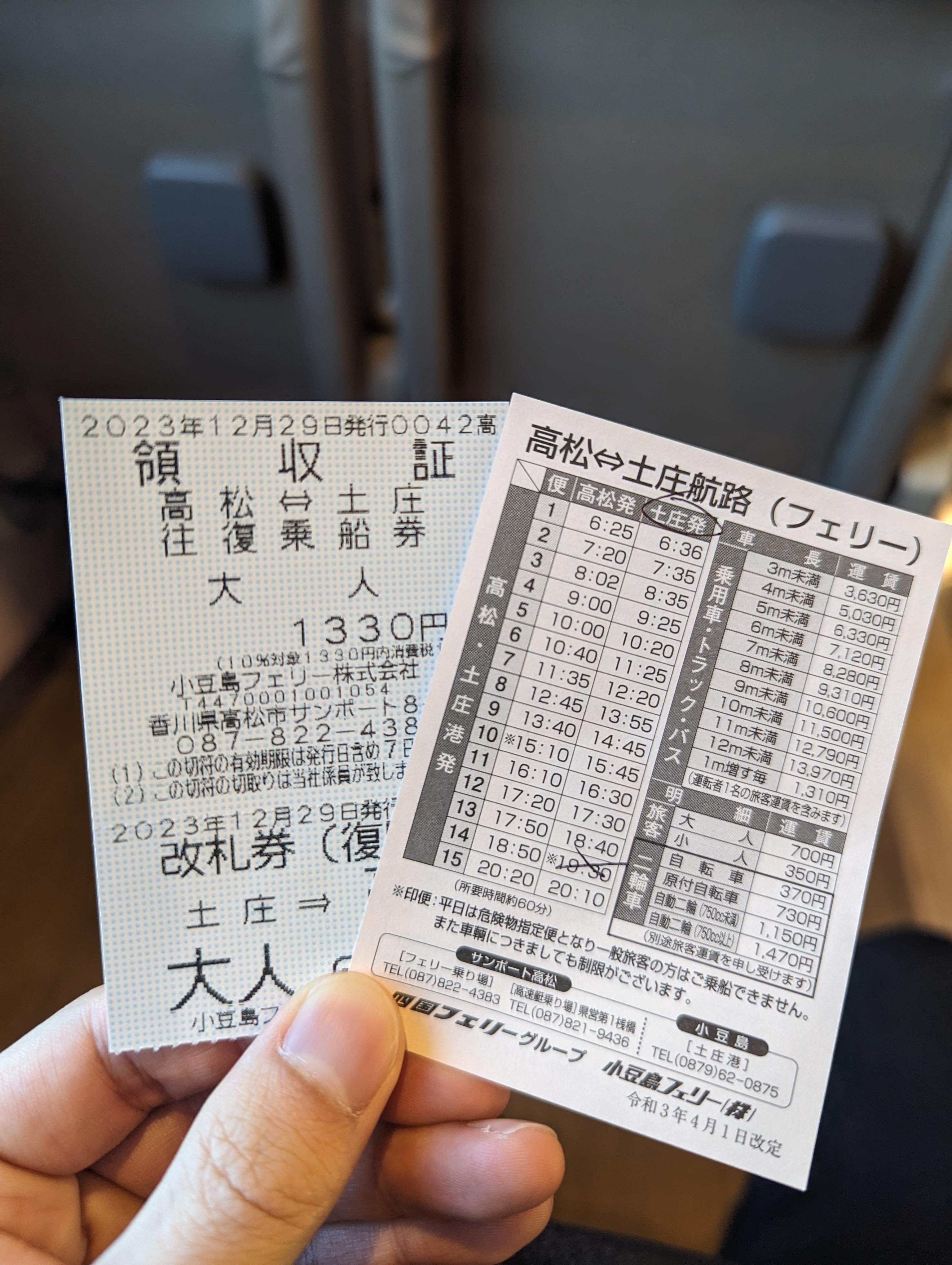 바로 왕복으로 구입. (쿠폰북에는 쇼도시마 페리 승선 티켓이 포함된다)