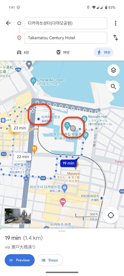 다카마쓰 칫코역에서 굉장히 가깝다.
