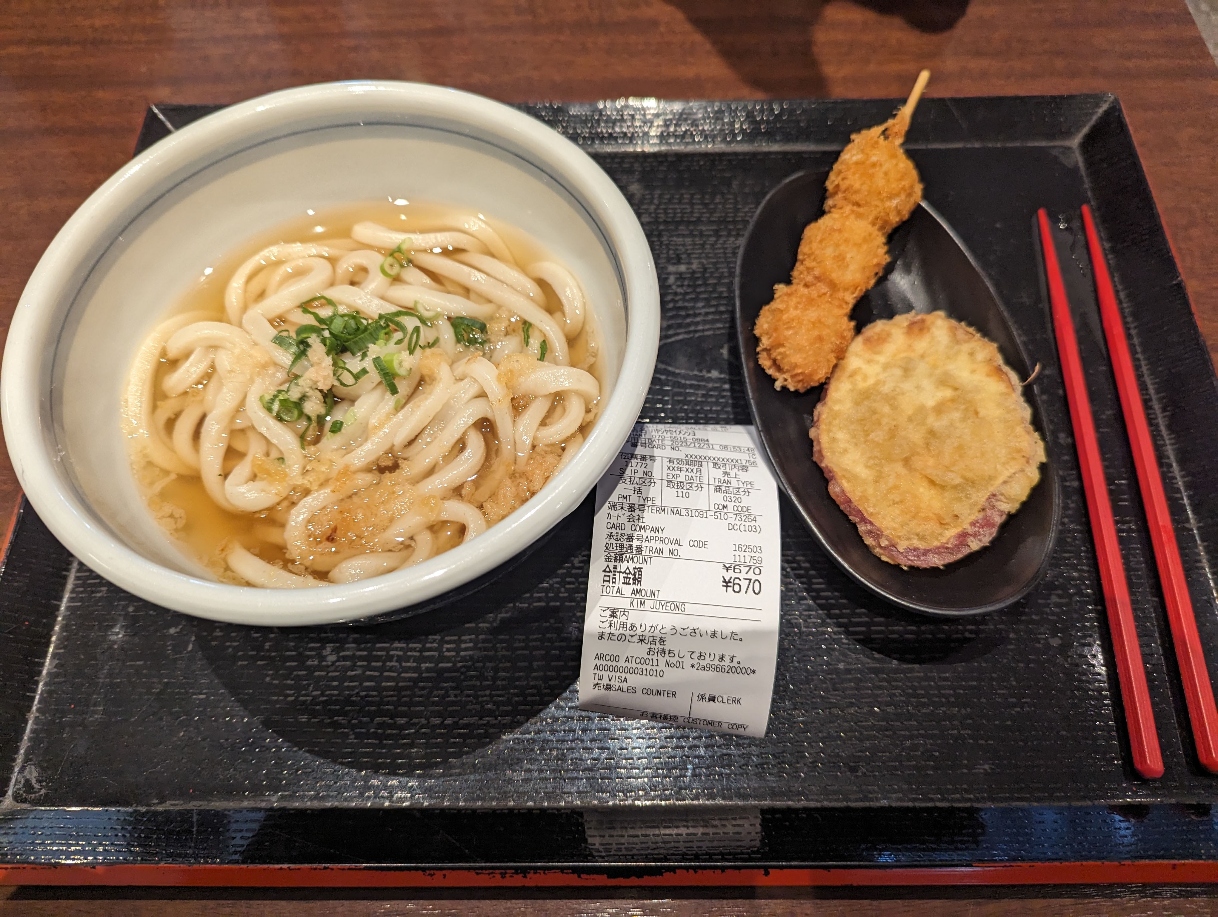 카게 우동 단품이 350엔 정도로 저렴했고 꽤 괜찮았다.